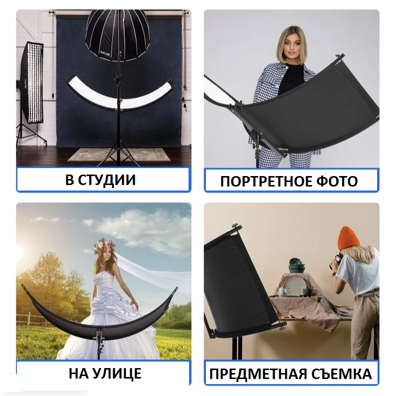 Идеально подойдет для съемки в студии, на улице с солнечным светом, а также make up съемки и food фотографии.